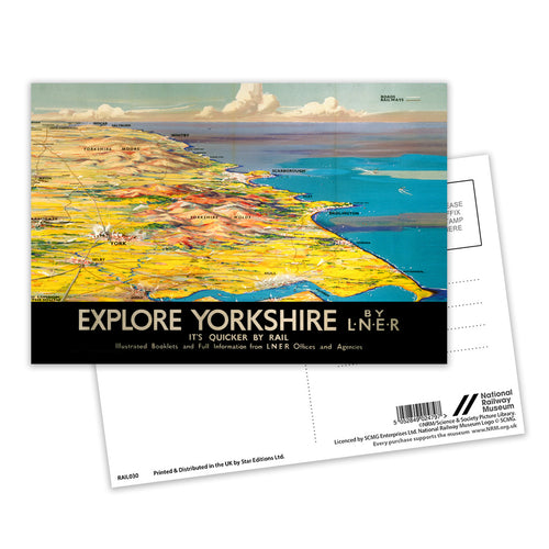 Explore Yorkshire - By LNER, It's Quicker By Rail Postcard Pack of 8